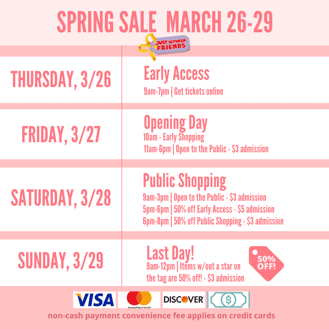 Shop our upcoming sale! Click GET TICKETS to see the full schedule, location and tickets available.